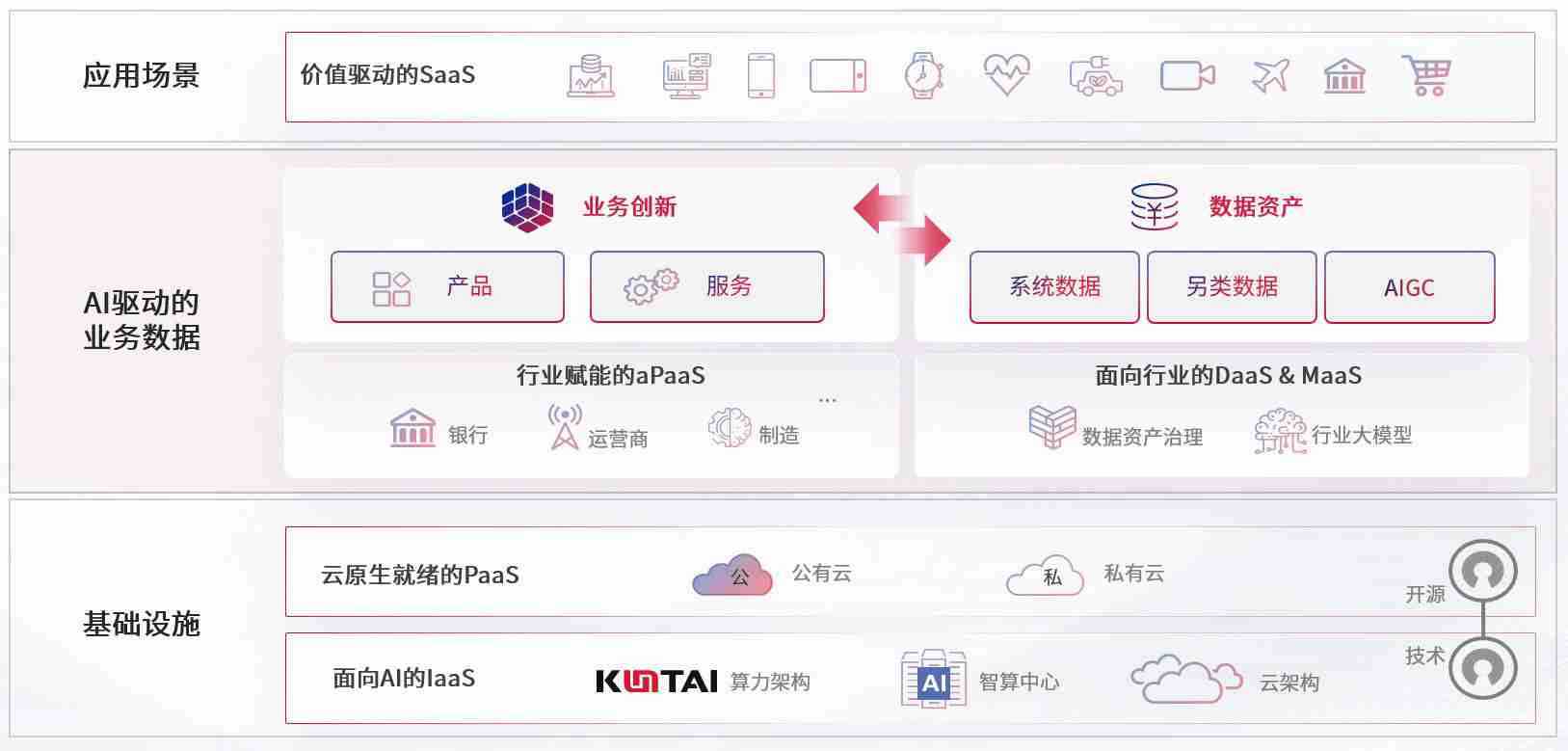 数字时代,,围绕企业数字化转型的关键要素,,,,星空娱乐数码开创性的提出数云融合战略和技术体系框架,,,,着力在云原生、、数字原生、、、、AI原生和信创产业上架构产品和服务能力,,,为处在不同数字化转型阶段的快消零售、、、、汽车、、金融、、、医疗、、政企、、教育、、、运营商等行业客户提供泛在的敏捷IT能力和融合的数据驱动能力,,构建跨界融合创新的数字业务场景和新业务模式,,助力企业级客户建立面向未来的核心能力和竞争优势,,全面推动社会的数字化、、、、智能化转型升级。。。。